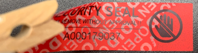 一度貼り付けて剥がすと、貼り付け部に「VOID」の文字が残ります。シールに「VOID」の文字が浮き出ます。