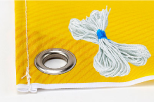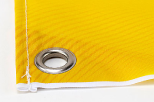 トロマットより生地が厚い為、耐久性が強くて設置しますと生地の歪みが少ないです。発色と鮮明度が優れていますが、Solventインク(耐水性)で印刷されますので日差しが強かったり雨の降る環境でも長く使えますので屋外での広告/イベント用に最適です。